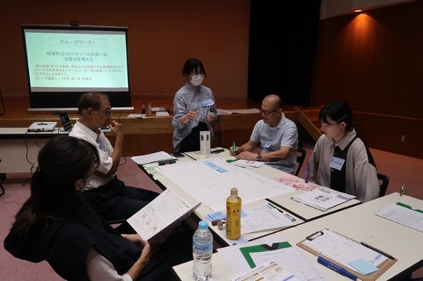 グループワークは、岐南町のコミュニティバスやタクシーの現状を踏まえて、良い点や改善点を話し合い、将来の持続的な岐南町の公共交通を実現するために、現実的な公共交通のバランスを考えました。あわせて、公共交通から見た岐南町の未来ビジョンを提案しました。
