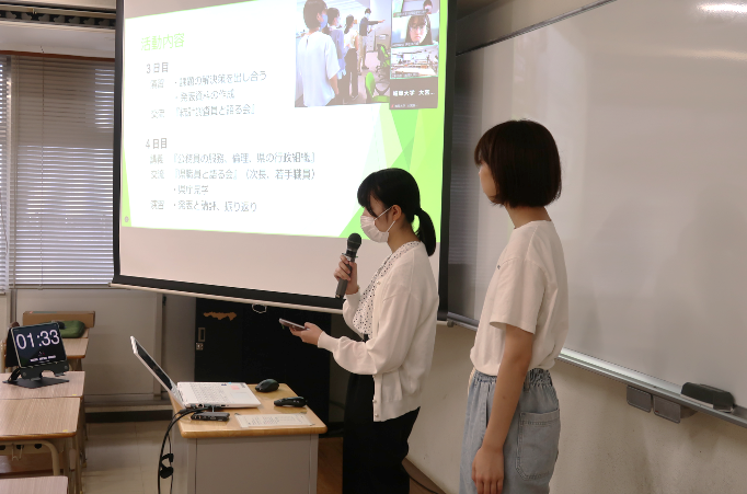 学生からは「実習で学んだ解決策の考え方を参考にして、今後自分が住む地域の課題やその解決策も考えられるようにしたい」「やりがいのある仕事をするということをありたい姿として計画を立て、幅広く学んでいきたい。さらに大学の外の世界を見て、経験を積んでいきたい」といった振り返りがありました。