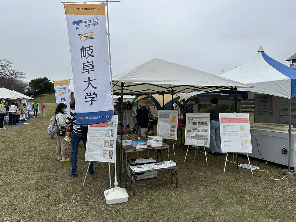 令和7年10月25日(土)、包括連携協定を締結している笠松町の支援のもと、「リバーサイドカーニバル2025」に岐阜大学紹介ブースを出展しました。会場となった笠松みなと公園では、木曽川の河川敷を活用した広場にステージが設けられ、地元事業者や市民団体による飲食ブースやPRコーナーなど、50以上のブースが並び、多くの来場者でにぎわいました。