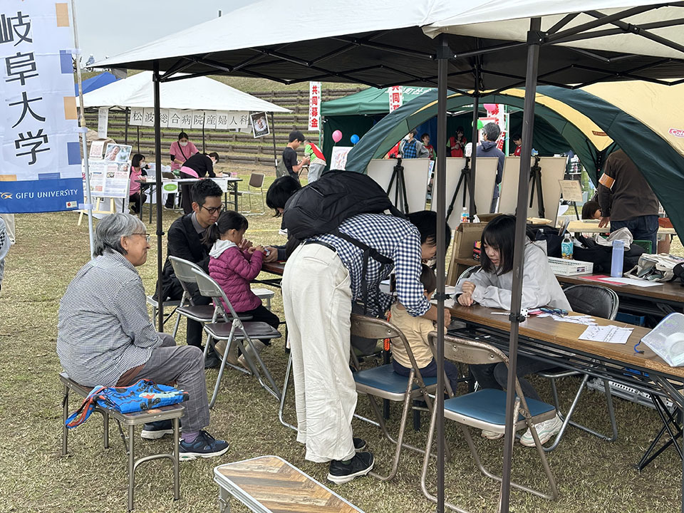 当日はスタンプラリーのスポットにもなり、100名以上の方々がブースを訪問しました。親子連れの参加も多く、工作に集中する子どもたちの姿や、「将来岐阜大学に入れるよう頑張ります」と語る声も聞かれ、地域とのつながりを実感する機会となりました。