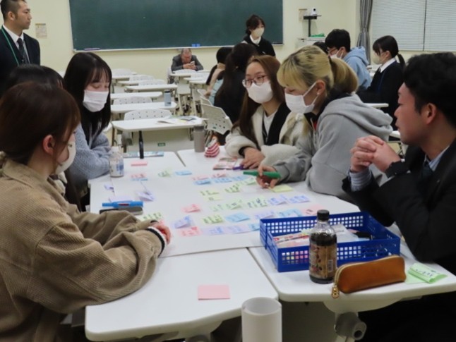 1月19日(月)に七宗町との共同で、「人が集まり、にぎわう上麻生駅前を考える」をテーマにフューチャーセンターを実施しました。参加者は、大学生12人、七宗町若手職員7人の合計19人でした。