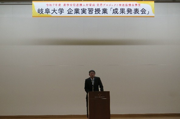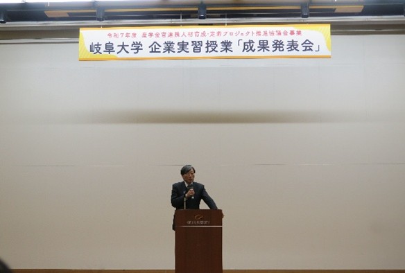 最後に、地域協学センターの益川センター長が「学生たちは、企業の皆さまから指導を受け、各企業の技術の高さを知りました。また逆に、学生が行った提案が企業側にもメリットがあったというのは、とても意義深いことです。岐阜大学では、引き続き、皆様にご指導いただきながら産学金官共創教育を推進していきます」と述べました。