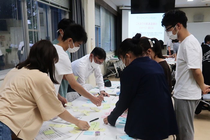 2020年7月13日(月)に岐阜大学で、岐阜大学生、中日本高速道路㈱名古屋支社岐阜・保全サービスセンター社員、十六銀行行員の計33人が参加し、ぎふフューチャーセンターを中日本高速道路㈱名古屋支社と共同開催しました。ポストコロナ社会における未来社会を支える高速道路の姿について考え、新しい生活や社会を実現する高速道路のあり方の創出について活発な対話を行いました。